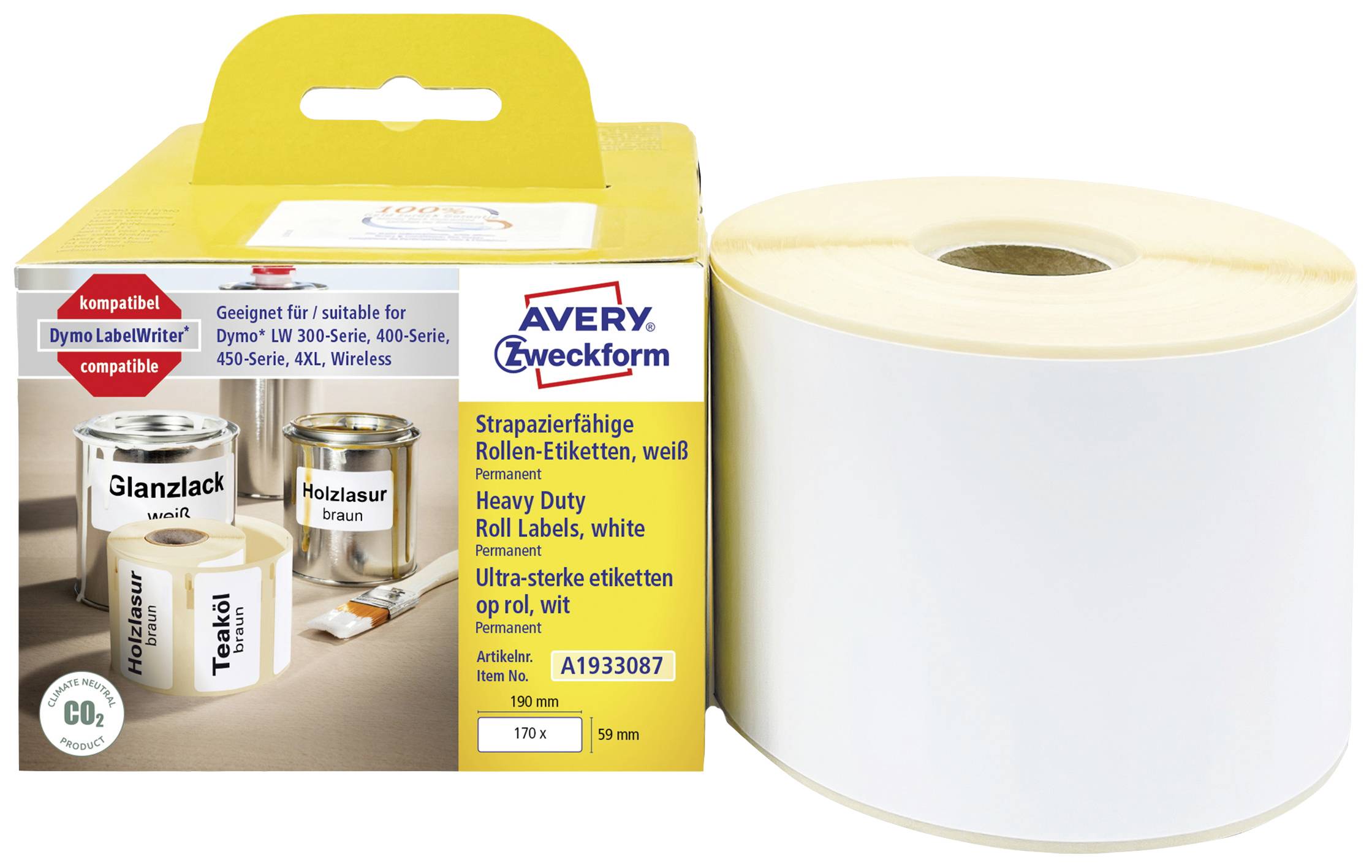 Avery-Zweckform Etikett rulle 190 x 59 mm Folie Vit 1 st A1933087 Universaletiketter